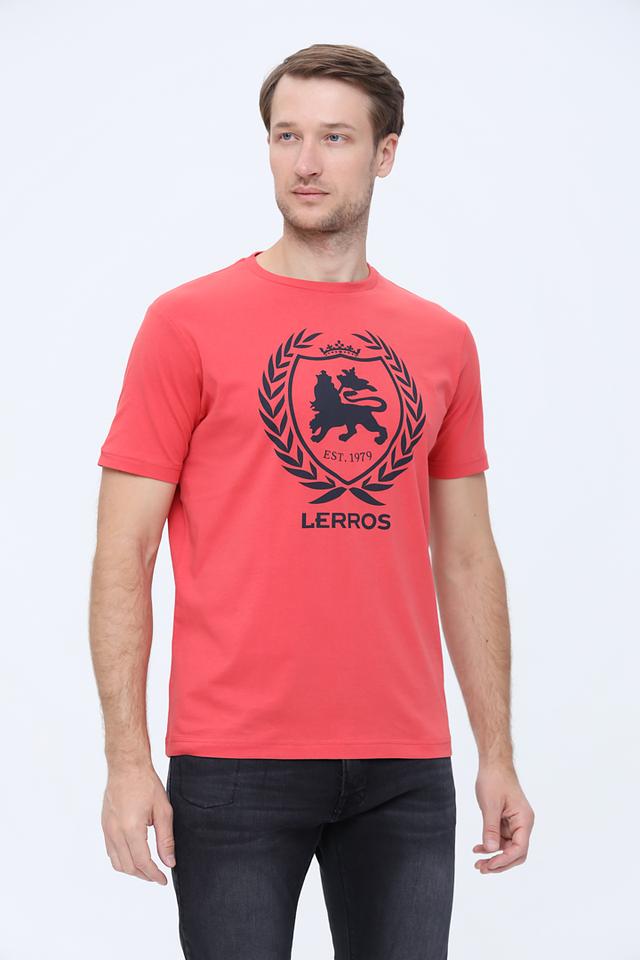 Мужская футболка Lerros коричневого цвета с оригинальным принтом в виде геральдического льва. Классический крой и 100% хлопковый состав обеспечивают комфорт и удобство в носке. Стильное решение для повседневного образа. Состав: хлопок 100%