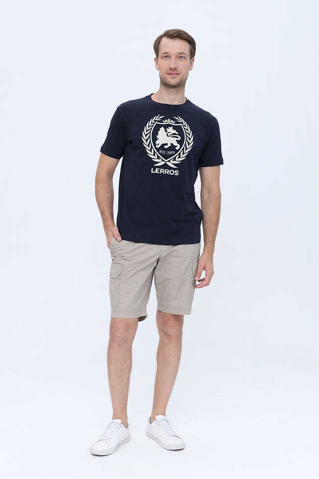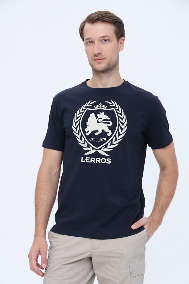 Синяя футболка Lerros с круглым вырезом и оригинальным логотипом на груди. Изготовлена из 100% хлопка, обеспечивающего комфорт и воздухопроницаемость. Стильный и универсальный вариант для повседневного образа. Состав: хлопок 100%