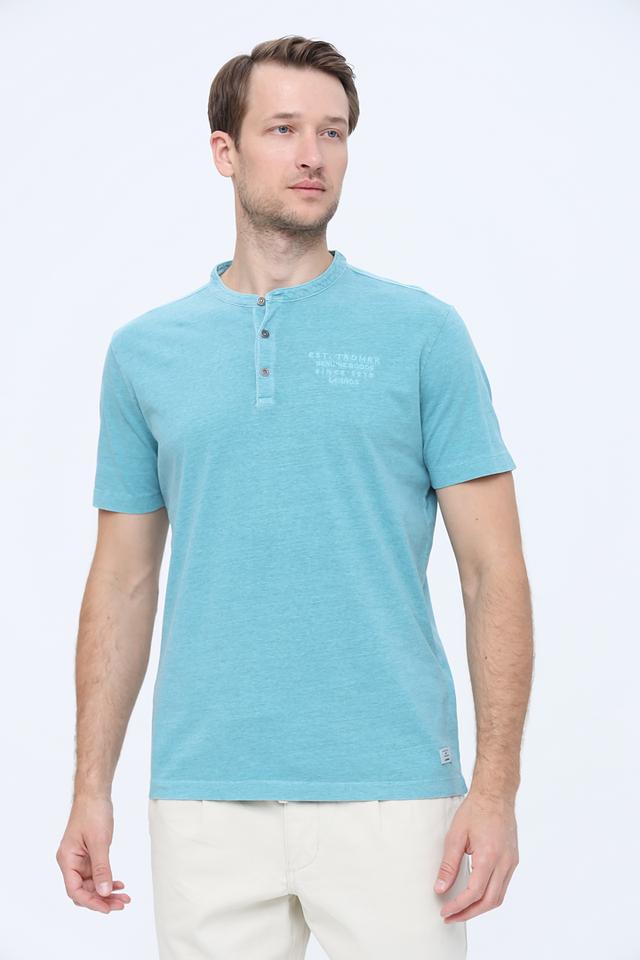 Мужская футболка Lerros бирюзового цвета с короткий рукавом и планкой на пуговицах. Изготовлена из мягкого хлопка с добавлением вискозы для комфорта и приятных ощущений при носке. Состав: хлопок 98%, вискоза 2%