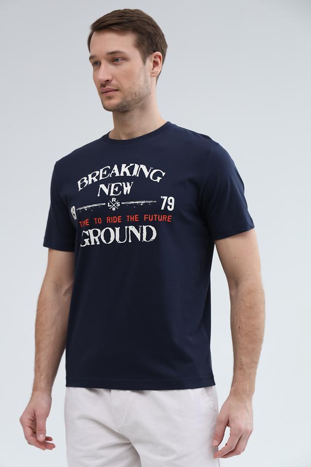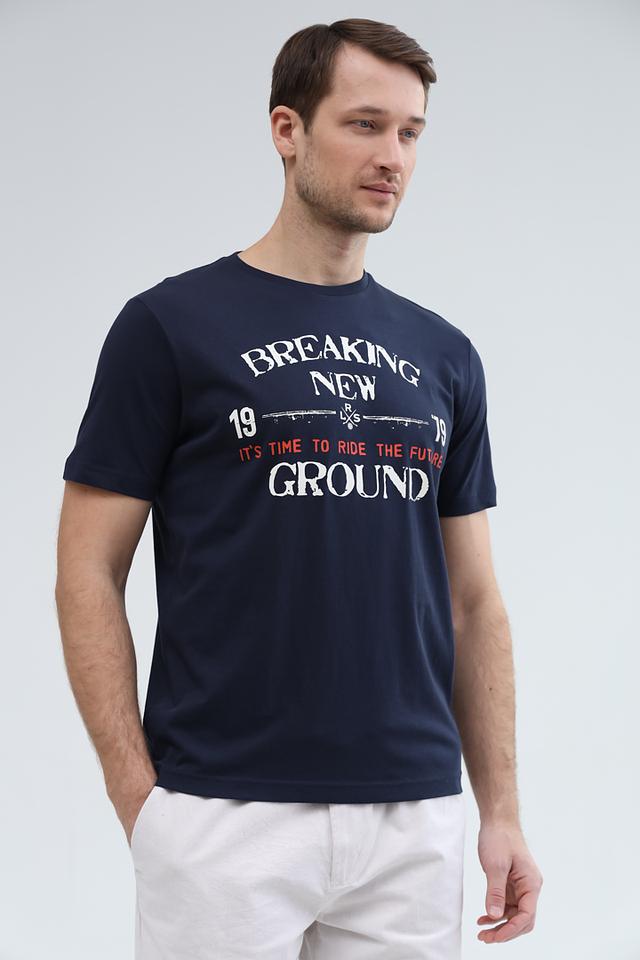 Мужская футболка Lerros синего цвета с оригинальным принтом на груди. Изготовлена из 100% хлопка, обеспечивающего комфорт и воздухопроницаемость. Отличный выбор для повседневного образа. Состав: хлопок 100%