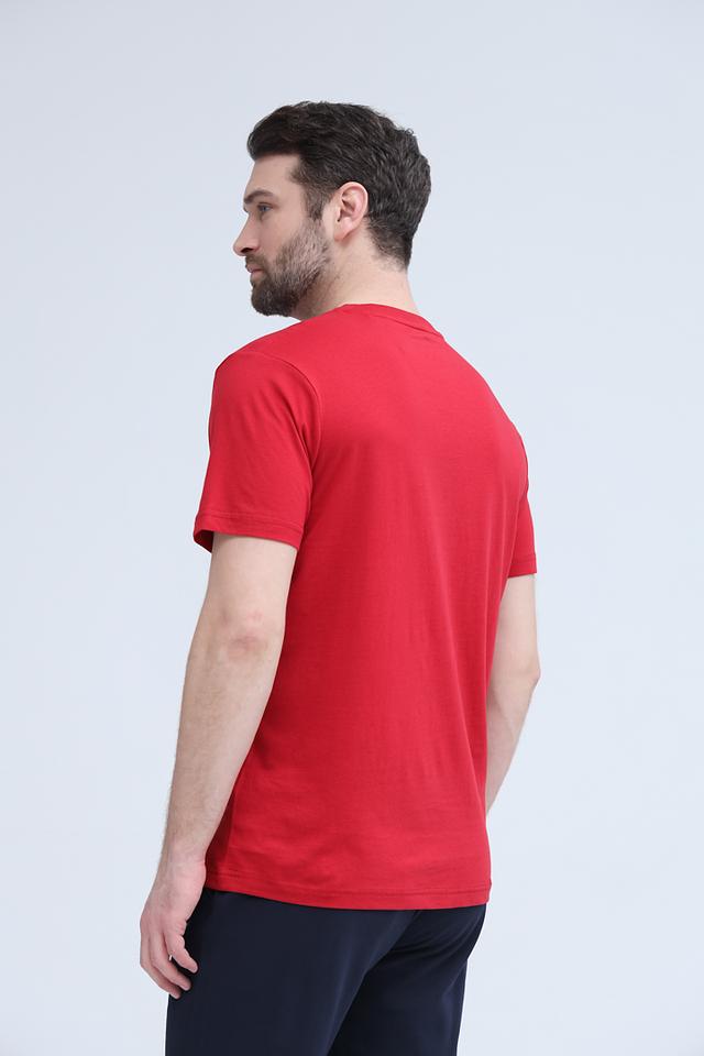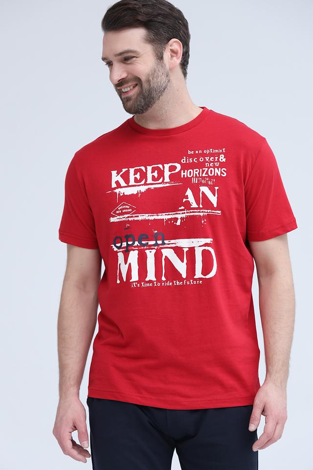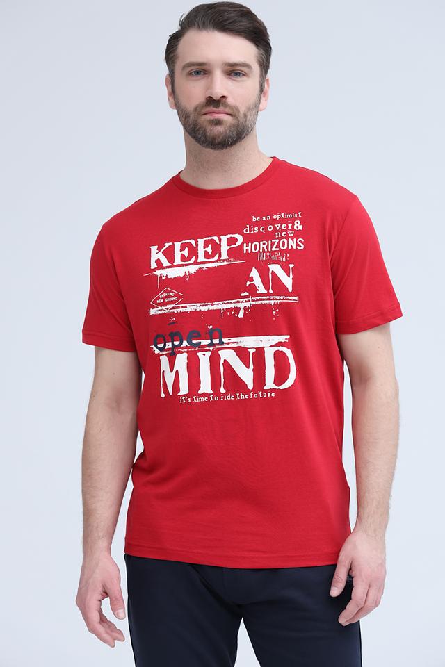 Мужская футболка Lerros выполнена в насыщенном красном цвете и украшена оригинальным принтом с надписями и графическими элементами. Модель имеет классический крой и круглый вырез горловины, что обеспечивает удобную посадку по фигуре.