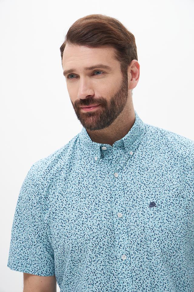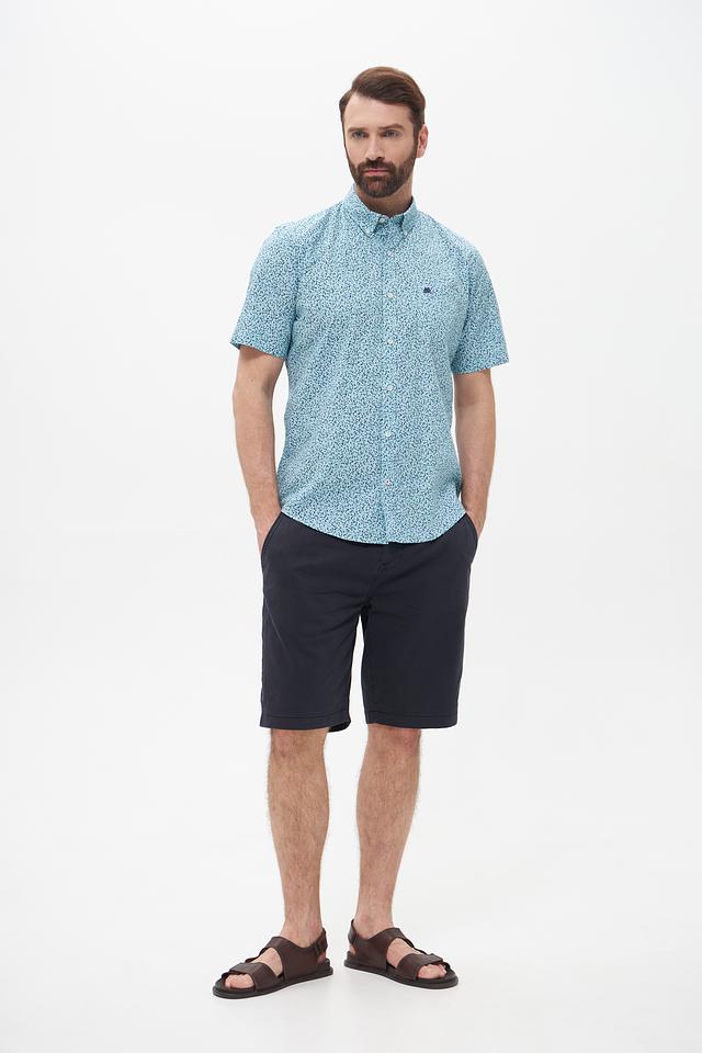 Мужская рубашка Lerros голубого цвета с коротким рукавом и оригинальным цветочным принтом. Изготовлена из 100% хлопка, обеспечивающего комфорт и воздухопроницаемость. Идеальный выбор для создания стильного и непринужденного образа. Состав: хлопок 100%