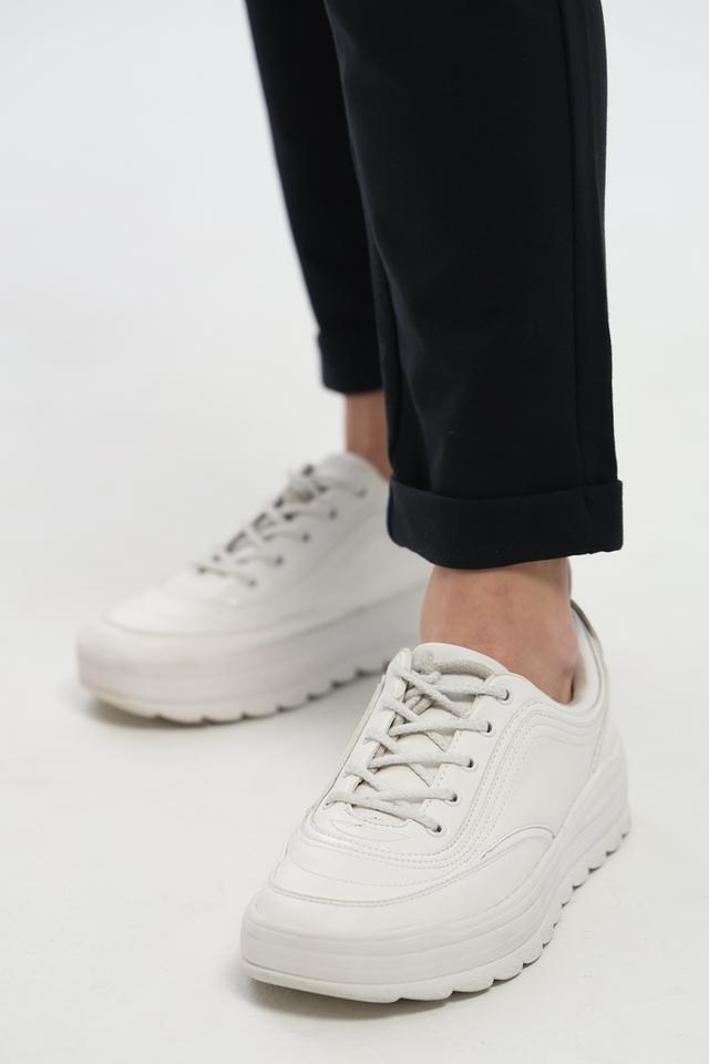 Материал брюк – мягкий и приятный к телу трикотаж, состоящий из 95% хлопка и 5% эластана. Этот состав обеспечивает комфорт при носке и хорошую посадку по фигуре. Манжеты внизу брючин позволяют регулировать длину и создавать различные образы.