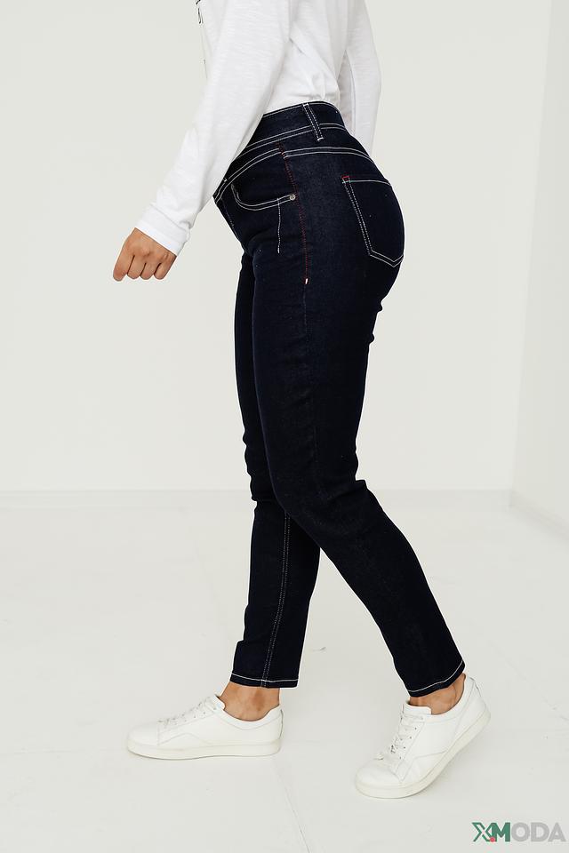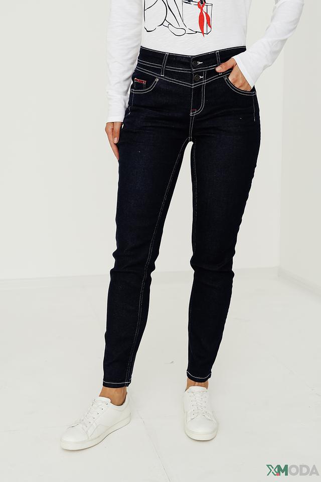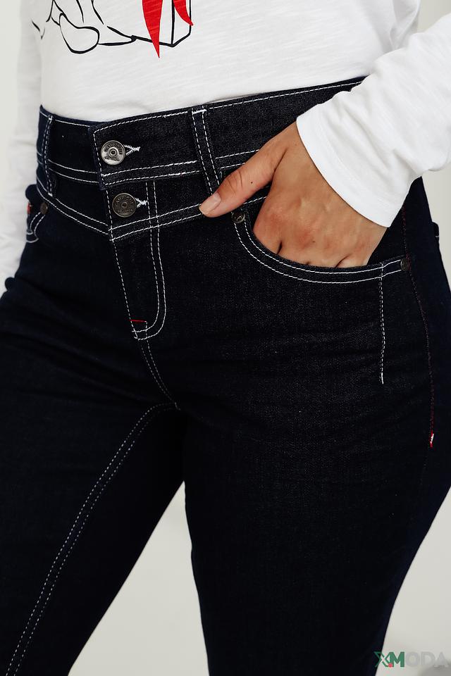 Особенностью этих джинсов является контрастная белая отделка по швам, карманам и поясу, что придает им оригинальный и современный вид. Прямой крой обеспечивает комфортную посадку по фигуре, а эластичный состав (82% хлопок, 16% полиэстер, 2% эластан) гарантирует свободу движений.