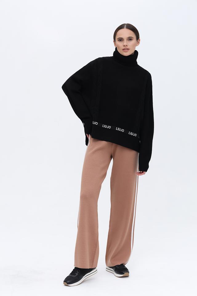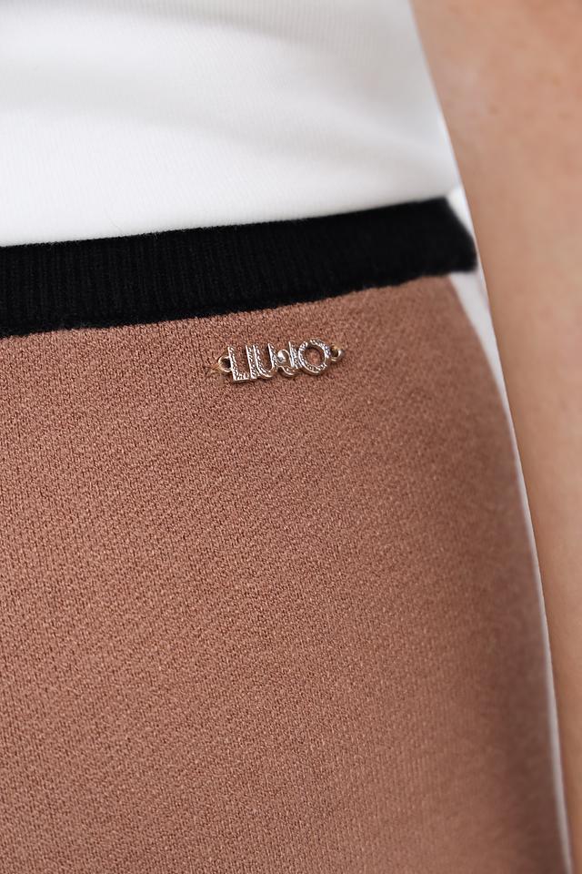 Бежевые брюки Liu-Jo клёш с боковыми полосками — стильное и комфортное решение для повседневного образа. Модель выполнена из мягкой ткани с добавлением вискозы, полиэстера и полиамида. Состав: вискоза 52%, полиэстер 28%, полиамид 20%