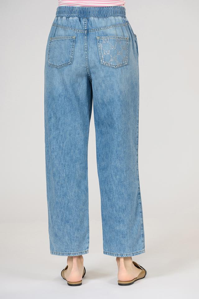 Синие джинсовые брюки Liu-Jo с эластичным поясом и завязками — удобная и стильная модель для повседневной носки. Брюки выполнены из 100% хлопка, обеспечивающего комфорт и воздухопроницаемость. Состав: хлопок 100%