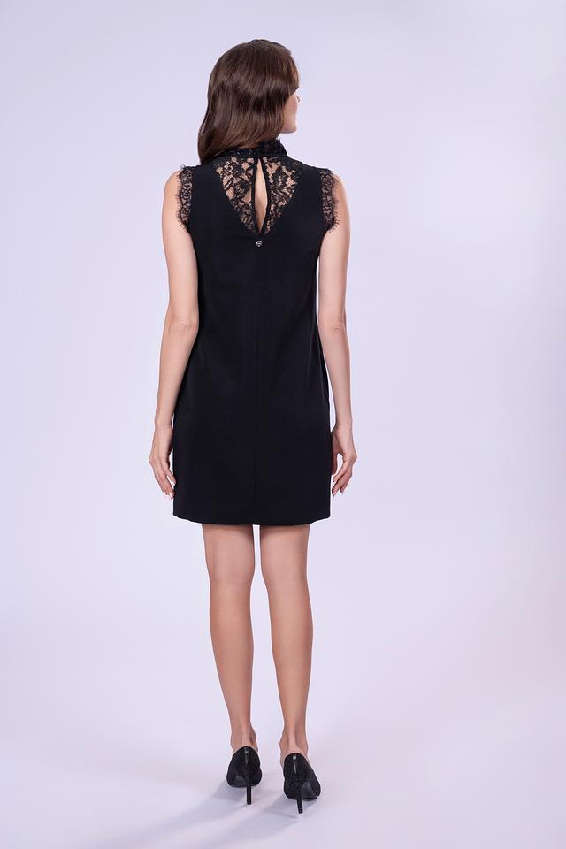 Чёрное платье от Liu-Jo – элегантная модель с отделкой из кружева. Платье имеет прямой силуэт и короткую длину, а также декоративные завязки на горловине. Состав: полиэстер 88%, эластан 12%
