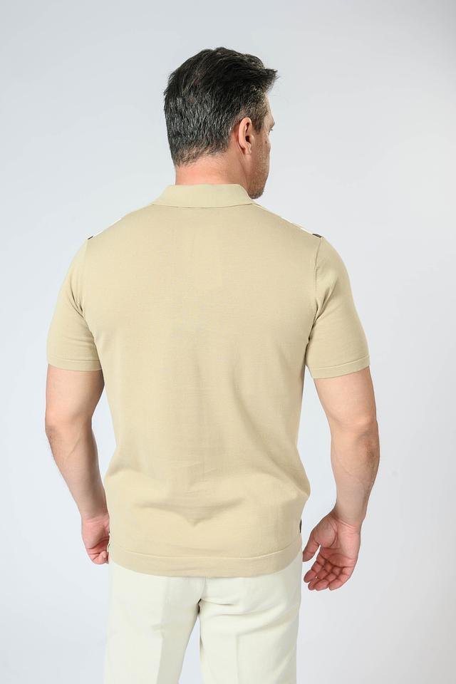 Джемпер имеет короткий рукав и воротник-поло, что придает ему более современный и непринужденный вид. Застежка на пуговицы позволяет регулировать степень открытости и создавать различные образы.