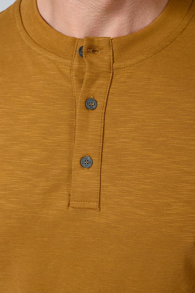 Мужская футболка от Liu-Jo выполнена в приятном горчичном оттенке. Модель имеет короткий рукав и круглый вырез горловины, оформленный планкой с тремя пуговицами.