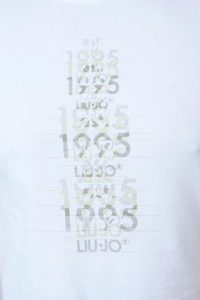 Мужская футболка Liu-Jo белого цвета с оригинальным принтом. Изготовлена из 100% хлопка, обеспечивающего комфорт и воздухопроницаемость. Стильный и универсальный вариант для повседневного образа. Состав: хлопок 100%