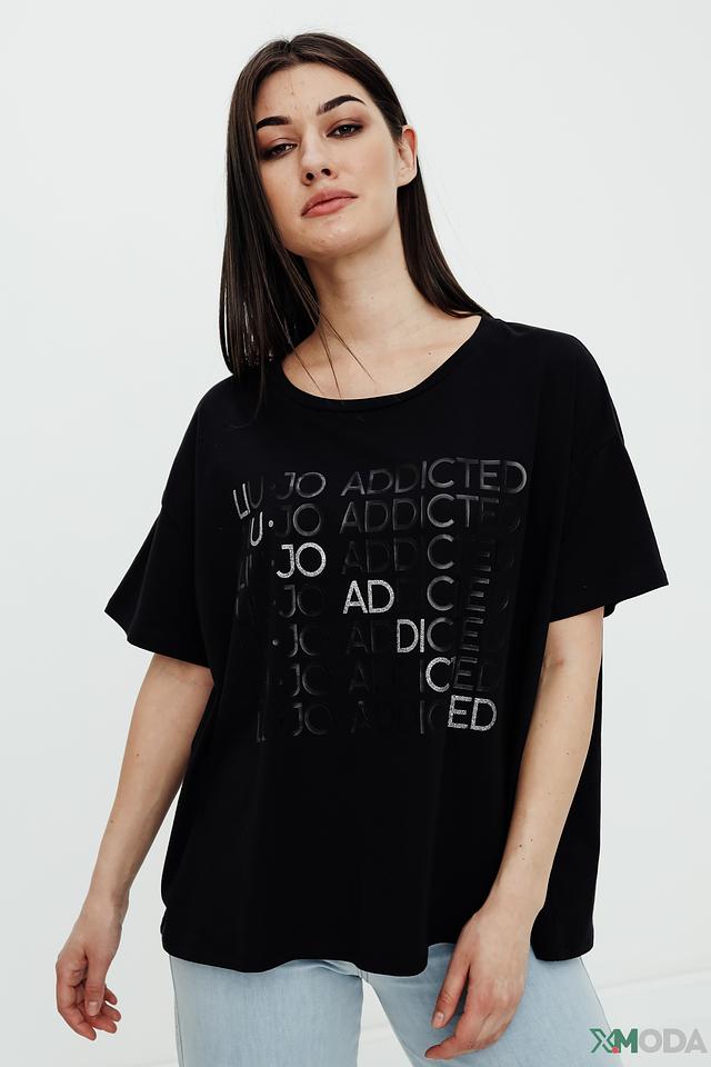 Чёрная футболка Liu-Jo с оригинальным принтом "Addicted" станет стильным дополнением к вашему гардеробу. Изготовлена из мягкого хлопка с добавлением эластана для комфорта и свободы движений. Состав: хлопок 95%, эластан 5%