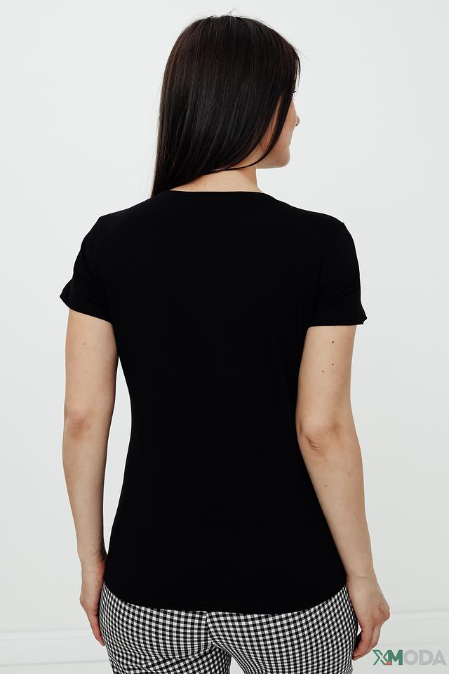 Классический крой и короткие рукава делают эту футболку универсальной и подходящей для любого случая. Чёрный цвет легко сочетается с другими элементами гардероба, позволяя создавать разнообразные образы.