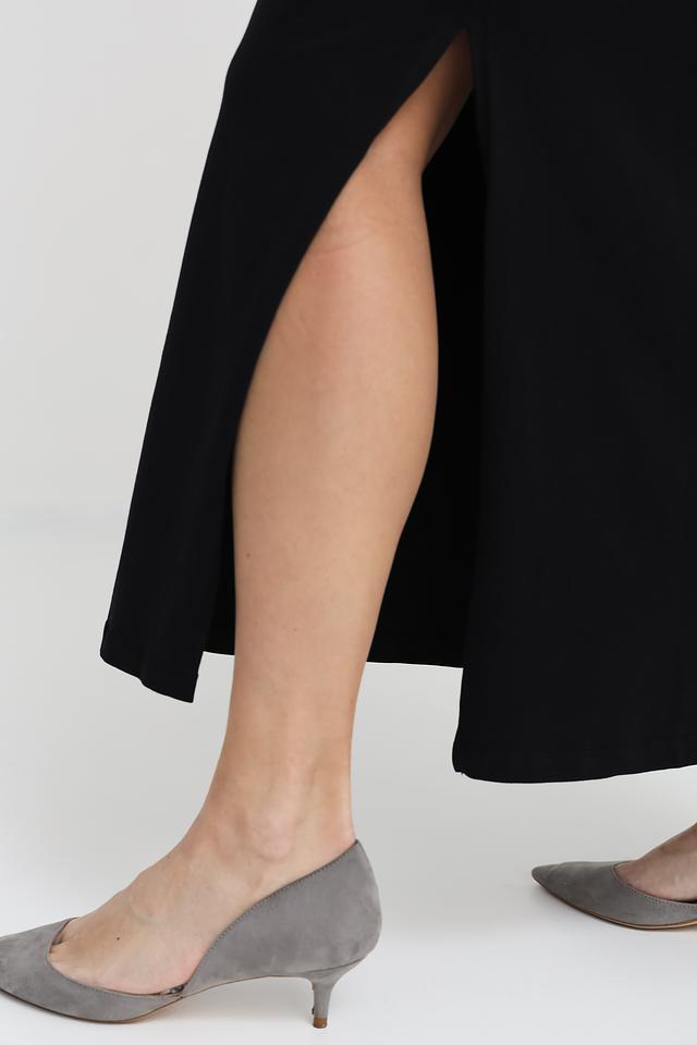 Это элегантное платье от Liu-Jo станет прекрасным дополнением к вашему гардеробу. Платье выполнено в классическом чёрном цвете и имеет длину миди, что делает его универсальным для различных случаев.