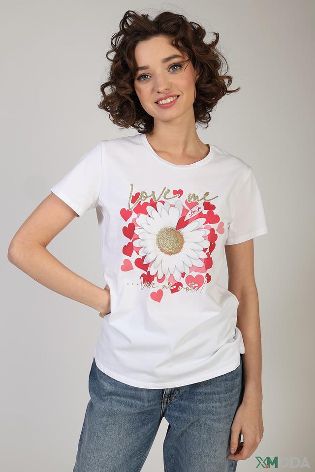 Белая футболка Liu-Jo Jeans с ярким цветочным принтом и надписью "love me". Изготовлена из мягкого хлопка с добавлением эластана для комфорта и лучшей посадки. Стильный и женственный образ для повседневной носки. Состав: хлопок 95%, эластан 5%