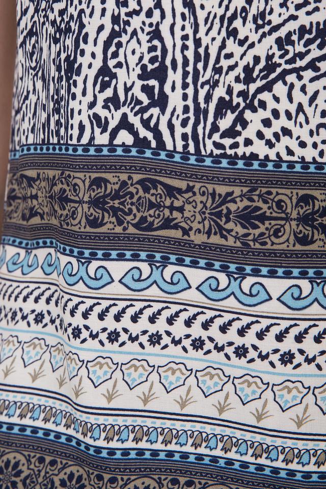 Блуза Locust белого цвета с ярким этническим принтом станет отличным дополнением к вашему гардеробу. Модель с короткими рукавами и округлым вырезом, выполнена из легкой и приятной к телу ткани. Состав: полиэстер 95%, эластан 5%