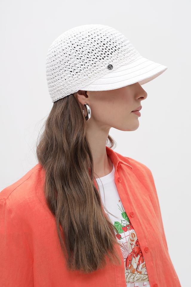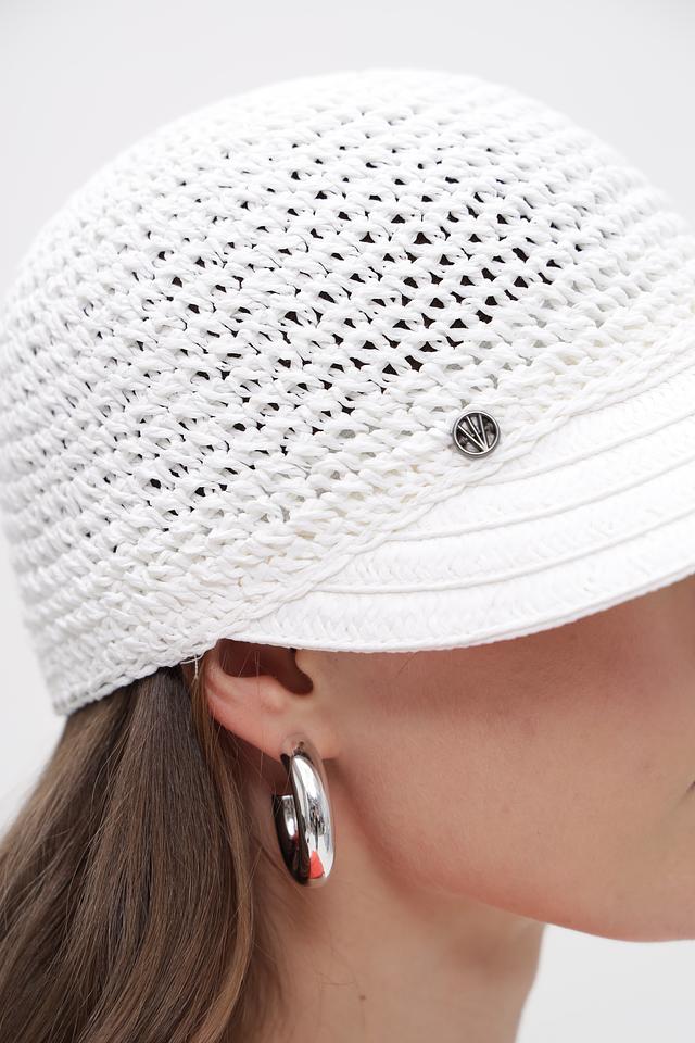 Белая кепка от Loevenich выполнена из плетеной бумаги, украшена небольшим логотипом. Легкий и стильный аксессуар для защиты от солнца и создания модного образа. Состав: бумага 100%