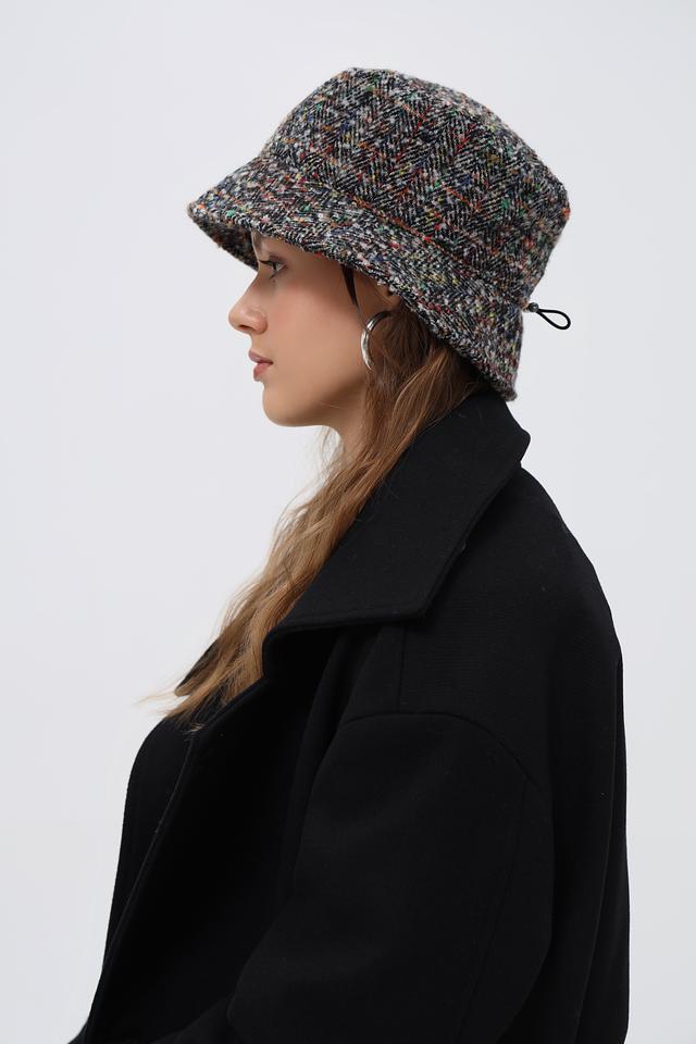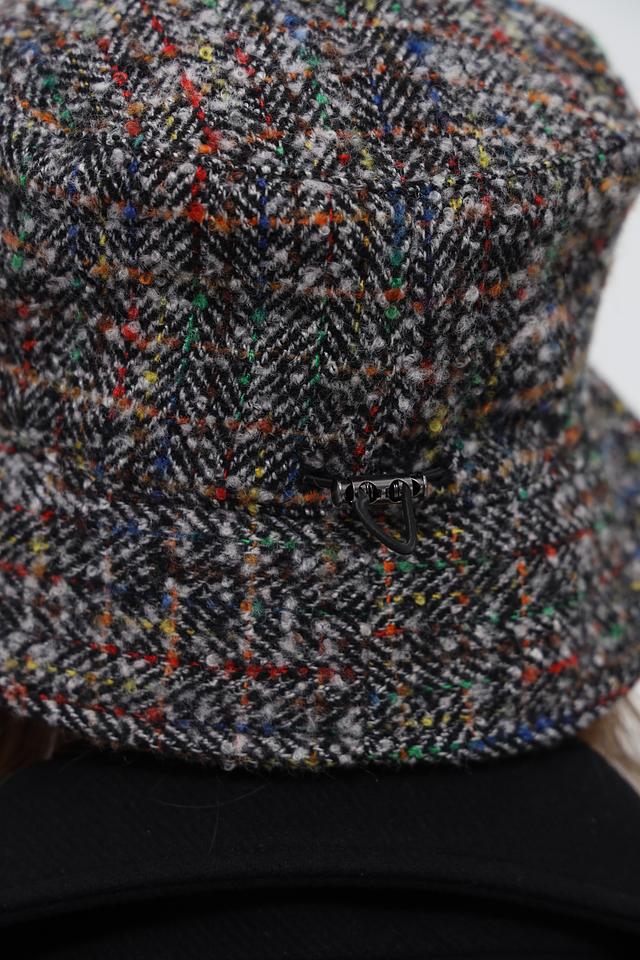 Шляпа имеет классическую форму bucket hat и украшена клетчатым принтом, выполненным в разнообразной цветовой гамме. Сочетание полиэстера, шерсти, полиакрила и полиамида в составе обеспечивает изделию прочность, износостойкость и приятные тактильные ощущения.