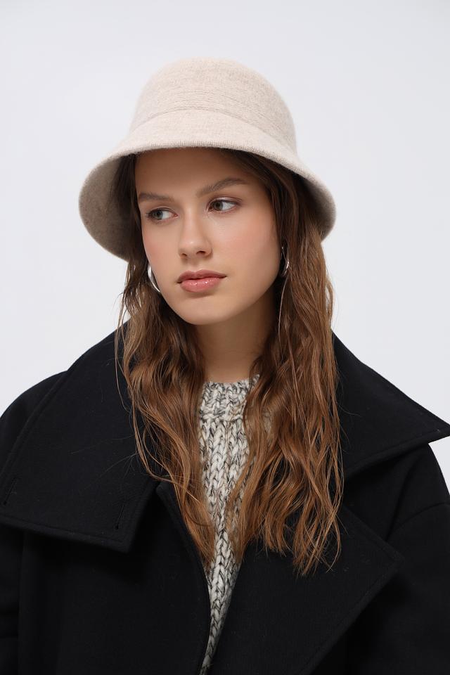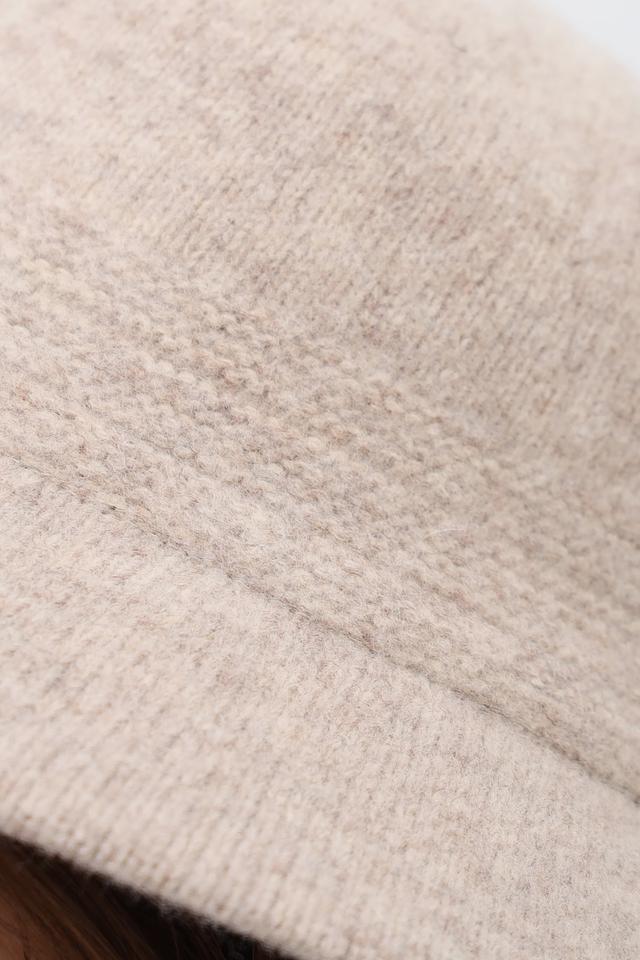 Шляпа выполнена в форме классической «bucket hat», что делает ее актуальной и модной. Вязаная текстура придает изделию мягкость и уют, а бежевый цвет – универсальность, позволяя легко сочетать шляпу с различными нарядами.