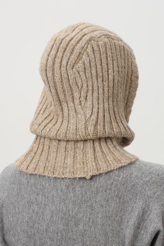 Шапка имеет капюшон, плавно переходящий в воротник, обеспечивая дополнительное тепло и защиту от холода. Крупная вязка придает изделию объём и фактурность.