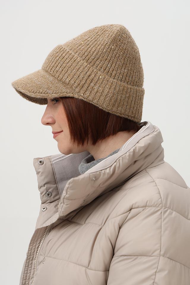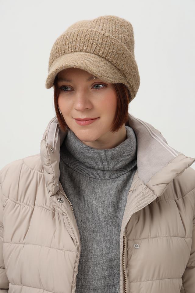 Шапка имеет удобный крой, плотно прилегающий к голове, и стильный дизайн с добавлением мерцающей нити, придающей ей особый шарм. Бежевый цвет модели универсален и легко сочетается с различными видами верхней одежды.