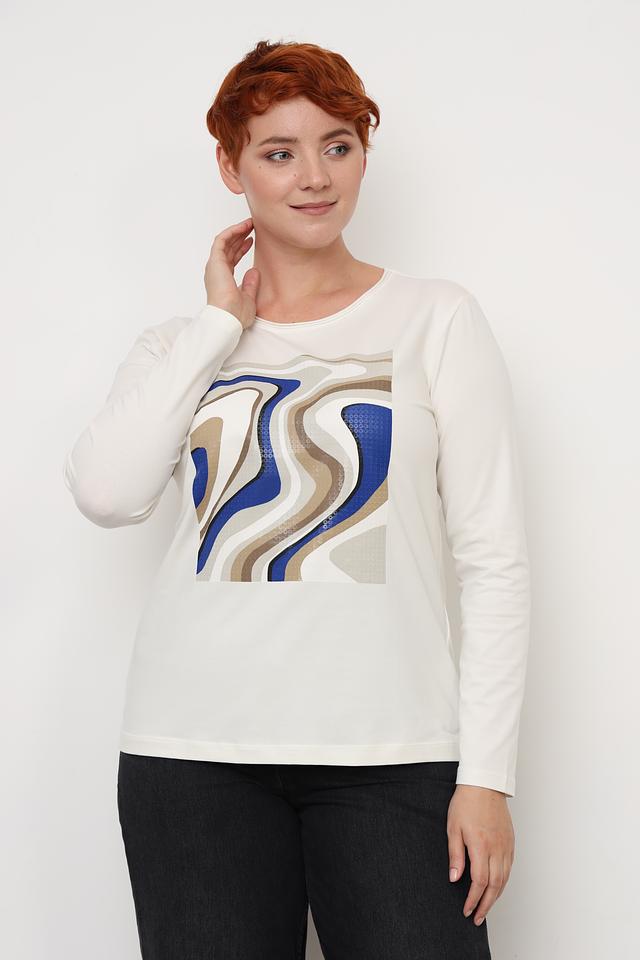 Женский лонгслив Bianca кремового цвета с оригинальным абстрактным принтом. Изготовлен из мягкого хлопка с добавлением эластана для комфортной посадки и свободы движений. Идеально подходит для создания стильных повседневных образов. Состав: хлопок 92%, эластан 8%