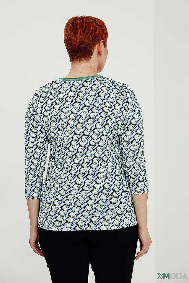 Женский лонгслив Bianca бирюзового цвета с оригинальным геометрическим принтом. Модель выполнена из мягкой вискозы с добавлением эластана, обеспечивающего комфортную посадку по фигуре. Состав: вискоза 94%, эластан 6%