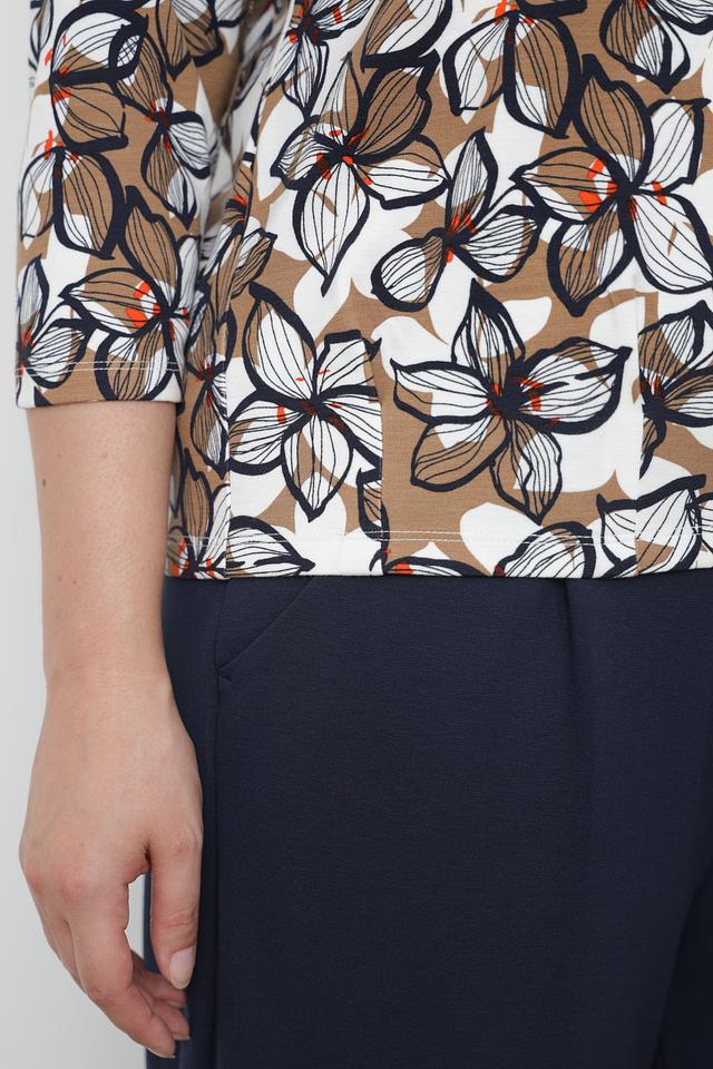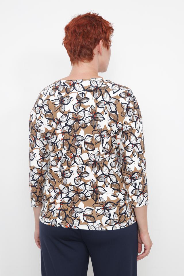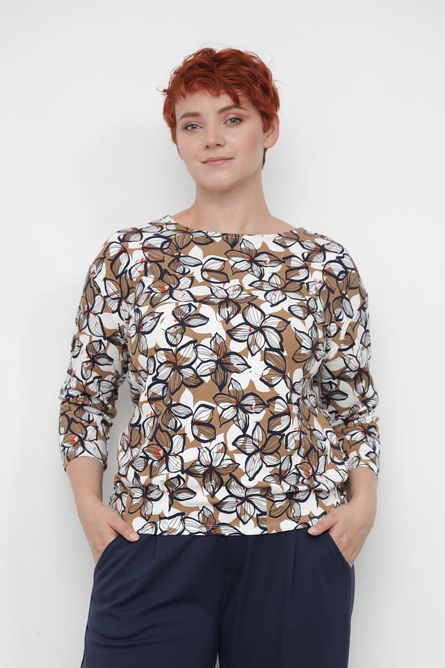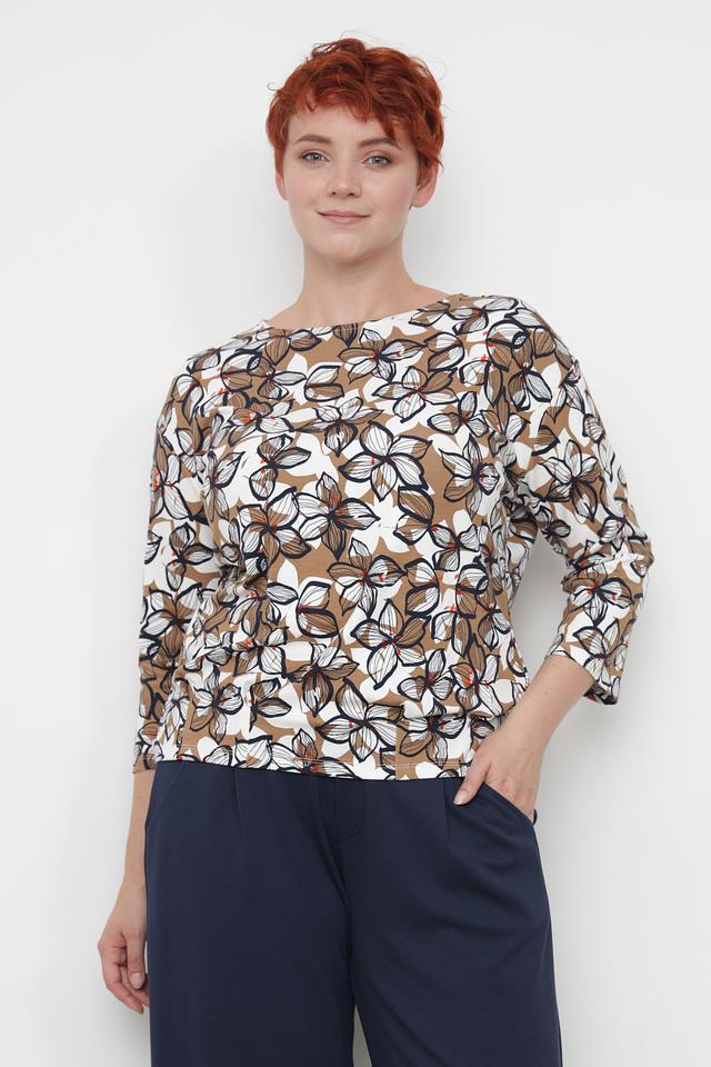 Лонгслив имеет удобный крой и длину рукава 3/4, что делает его идеальным для создания различных образов. Привлекательный цветочный принт добавляет изделию женственности и оригинальности.