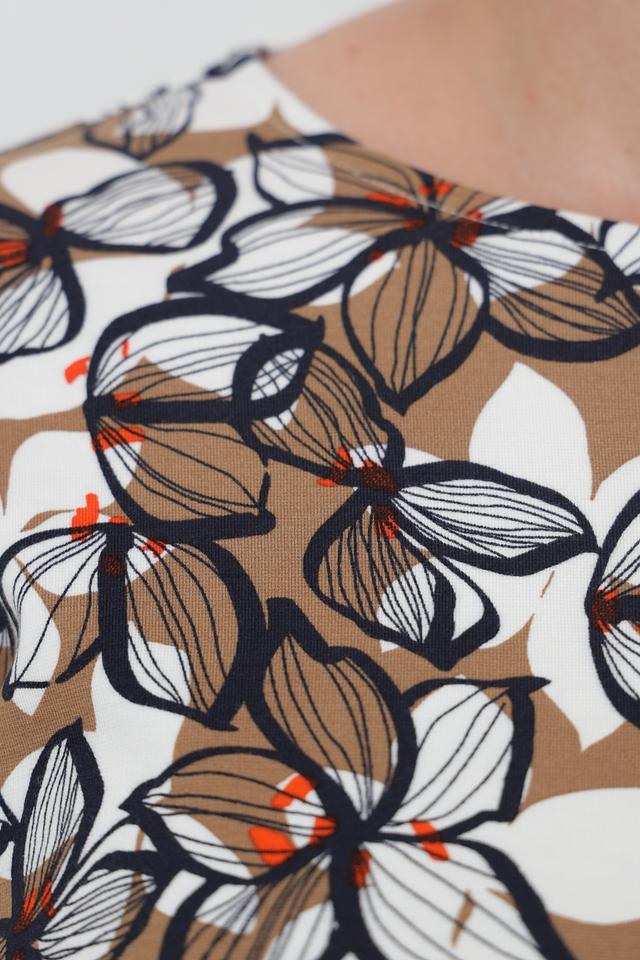 Женский лонгслив Lebek бежевого цвета с оригинальным цветочным принтом станет отличным дополнением к вашему гардеробу. Модель выполнена из мягкой и приятной к телу ткани, обеспечивающей комфорт в течение дня. Состав: вискоза 75%, полиэстер 23%, эластан 2%