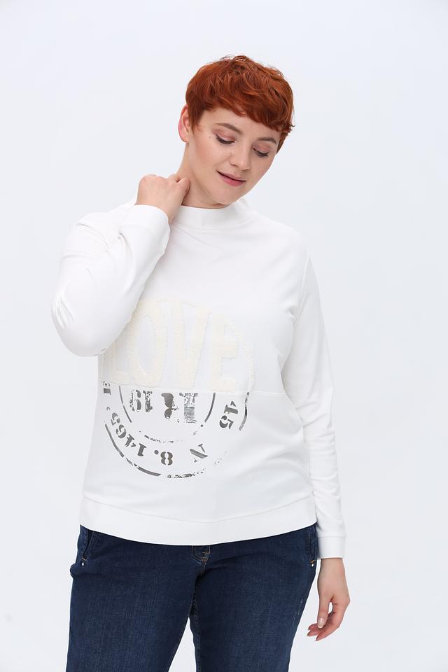 Этот стильный лонгслив от Rabe collection станет отличным дополнением к вашему гардеробу. Выполнен в белом цвете и украшен оригинальным принтом с надписью "LOVE" и графическими элементами, что придает ему особый шарм.