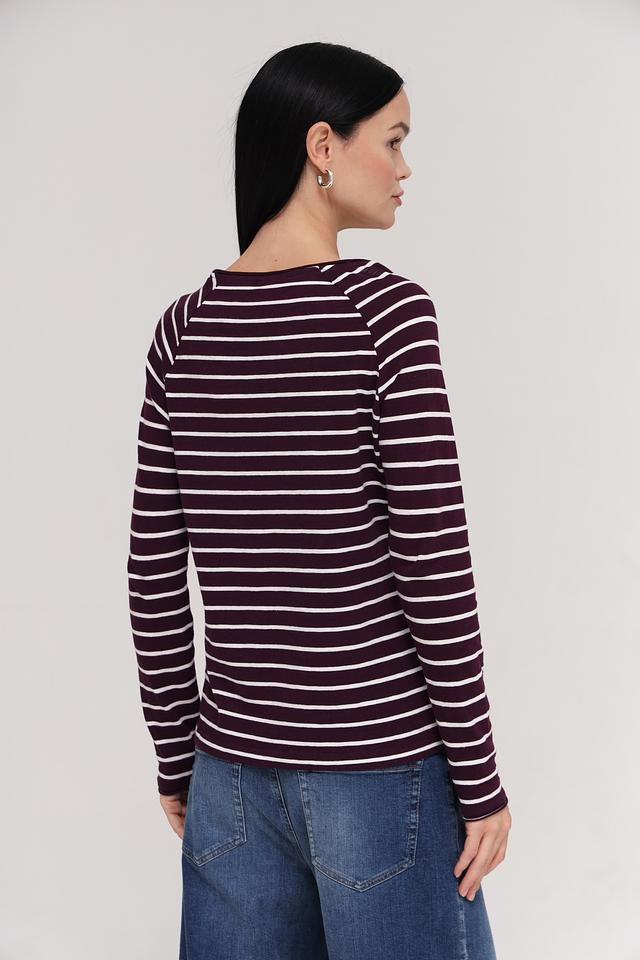 Лонгслив выполнен в бордовом цвете с классическим полосатым рисунком, который легко сочетается с различными элементами одежды. Прямой крой обеспечивает свободу движений, а длинные рукава защищают от прохлады.
