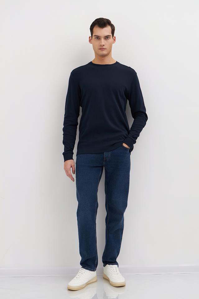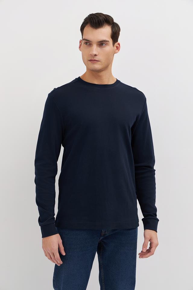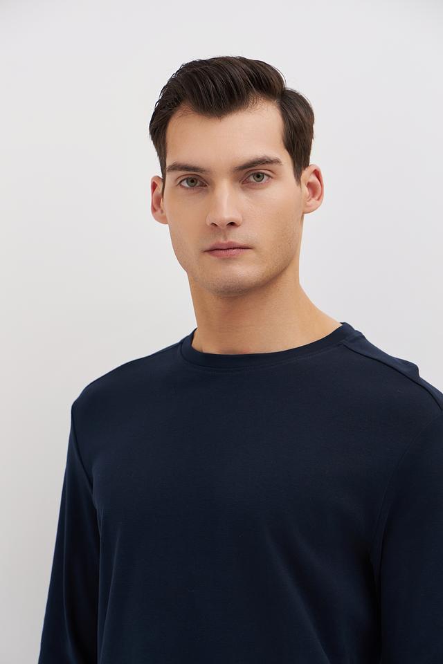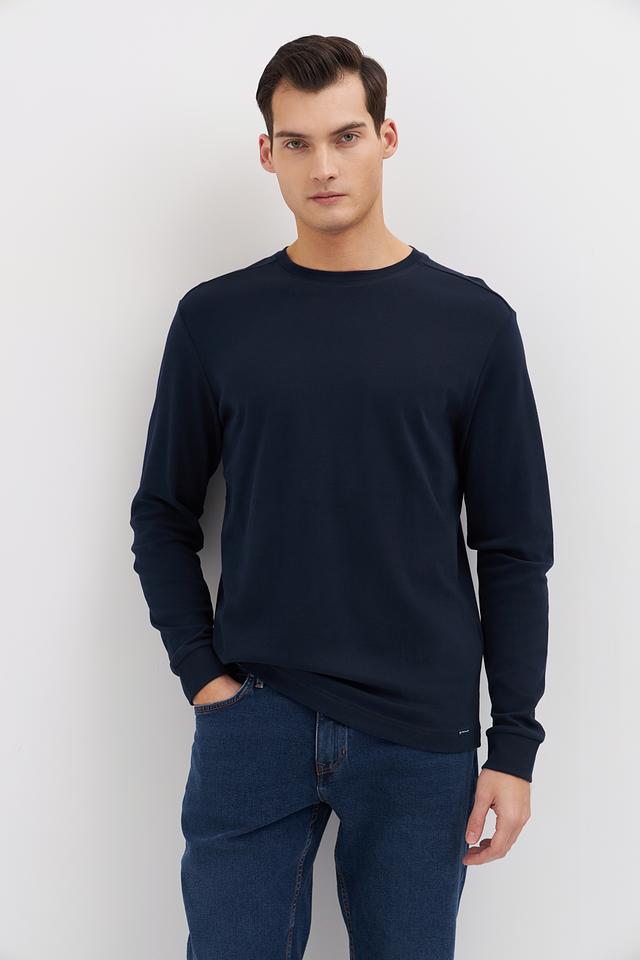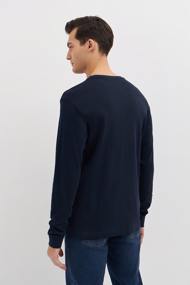 Цвет лонгслива – насыщенный темно-синий, который легко сочетается с различными элементами гардероба. Отсутствие ярких принтов и декоративных элементов делает эту модель универсальной и подходящей для любого случая. Минималистичный дизайн подчеркивает ваш безупречный вкус.