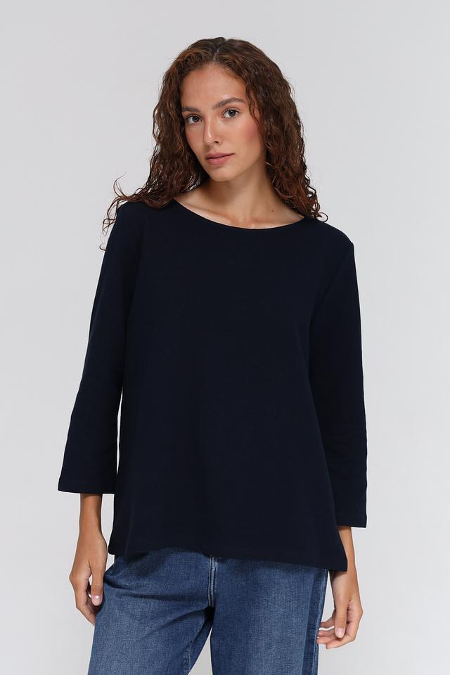 Лонгслив имеет прямой, слегка свободный крой, который обеспечивает комфорт и свободу движений. Округлый вырез горловины и длинные рукава делают его идеальным для прохладной погоды.