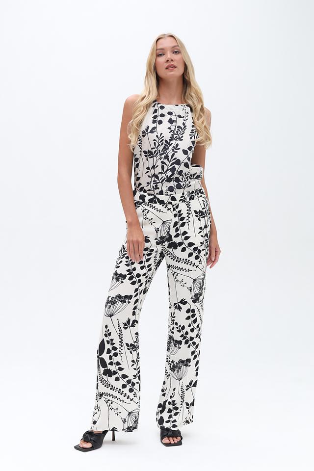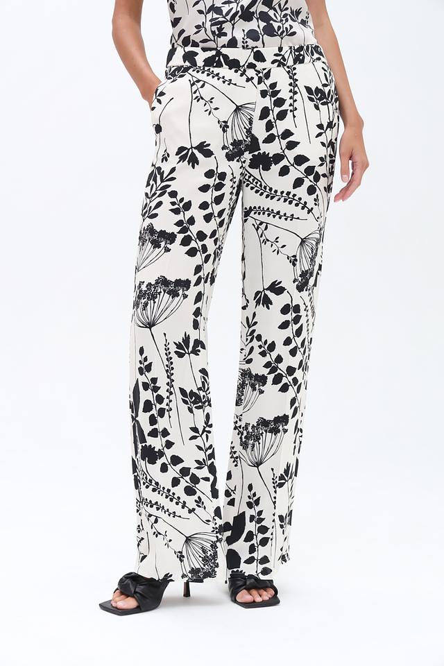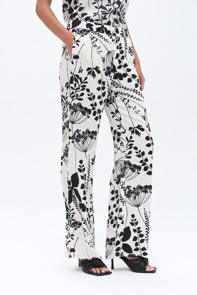 Особенностью модели является яркий цветочный принт, который добавляет образу женственности и оригинальности. Прямой крой брюк обеспечивает свободу движений и подходит для различных типов фигуры.