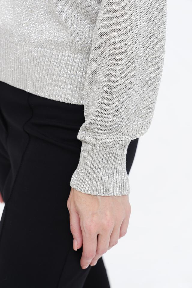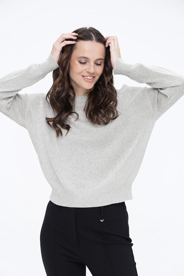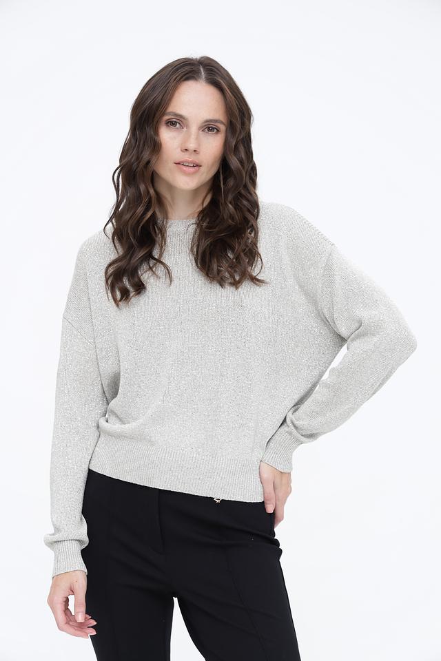 Модель имеет классический крой с длинными рукавами и округлым вырезом горловины. Пуловер изготовлен из высококачественной вискозы (80%) и полиэстера (20%), что делает его приятным к телу, дышащим и устойчивым к деформации.