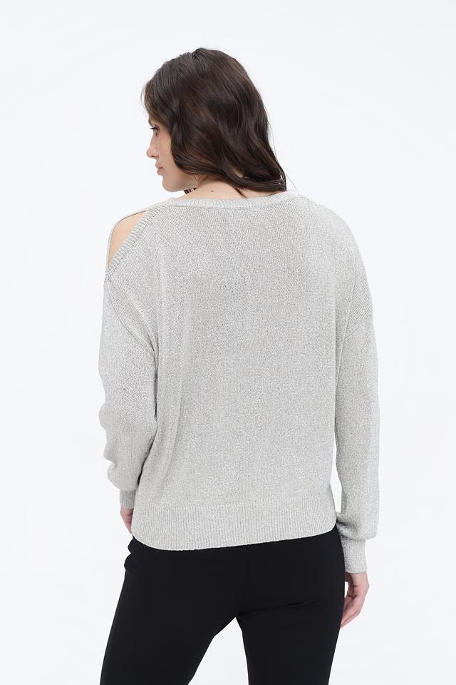 Пуловер имеет слегка свободный силуэт, который не сковывает движения и обеспечивает комфорт в течение всего дня. Текстура вязки придает изделию дополнительный объем и визуальный интерес.
