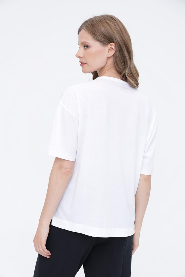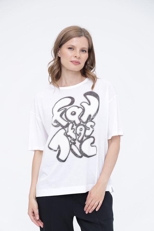 Белая футболка Luisa Cerano с оригинальным графичным принтом. Модель свободного кроя из 100% хлопка обеспечит комфорт и удобство в повседневной носке. Состав: хлопок 100%