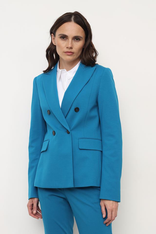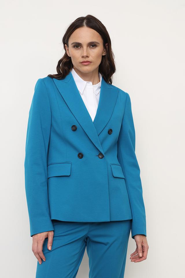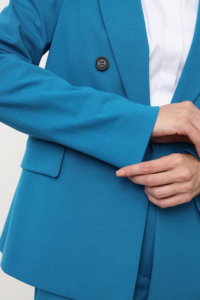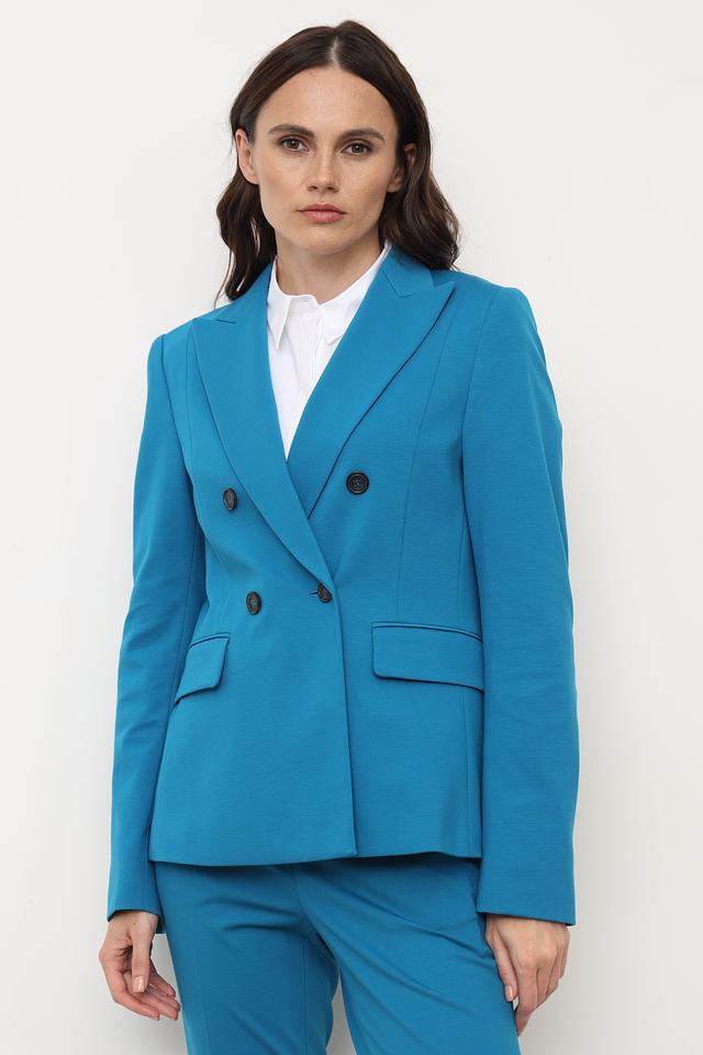 Жакет Luisa Cerano бирюзового цвета – элегантная модель с двубортной застёжкой и классическим кроем. Жакет выполнен из вискозы с добавлением полиамида и эластана, что обеспечивает комфорт и отличную посадку по фигуре. Состав: вискоза 56%, полиамид 36%, эластан 8%