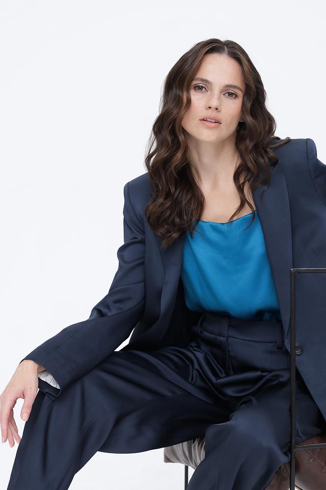 Этот жакет от Luisa Cerano станет незаменимой частью вашего гардероба. Классический крой и насыщенный синий цвет делают его универсальным решением для различных случаев.