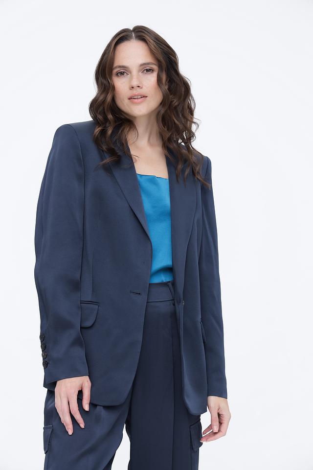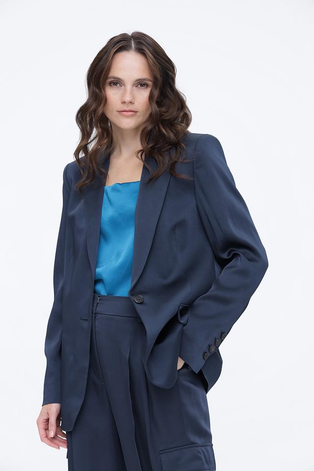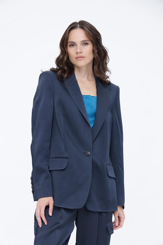 Жакет выполнен из высококачественного ацетата (71%) и вискозы (29%), что обеспечивает приятную посадку по фигуре, комфорт в носке и долговечность изделия. Однобортная застёжка на пуговицы добавляет элегантности, а лацканы классической формы подчеркивают стиль.