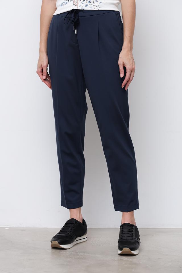 Брюки имеют прямой крой и зауженный книзу силуэт, что делает их универсальными для создания как деловых, так и повседневных образов. Эластичный пояс с кулиской обеспечивает комфортную посадку по фигуре. Наличие боковых карманов добавляет функциональности.