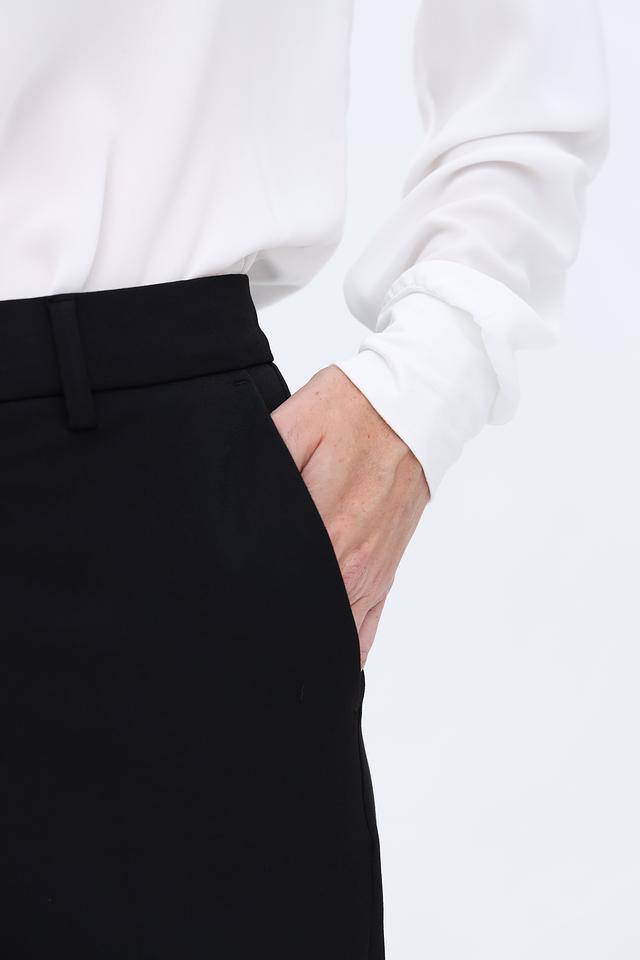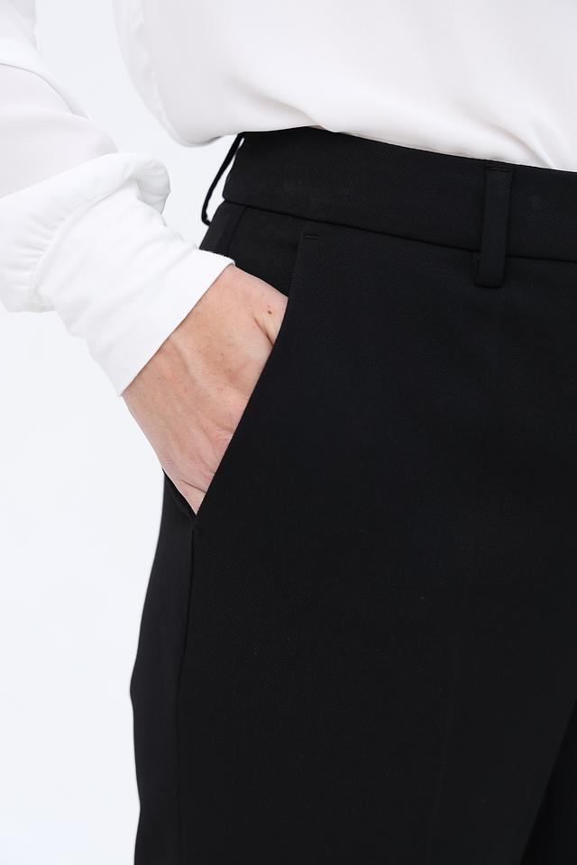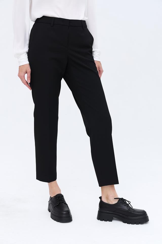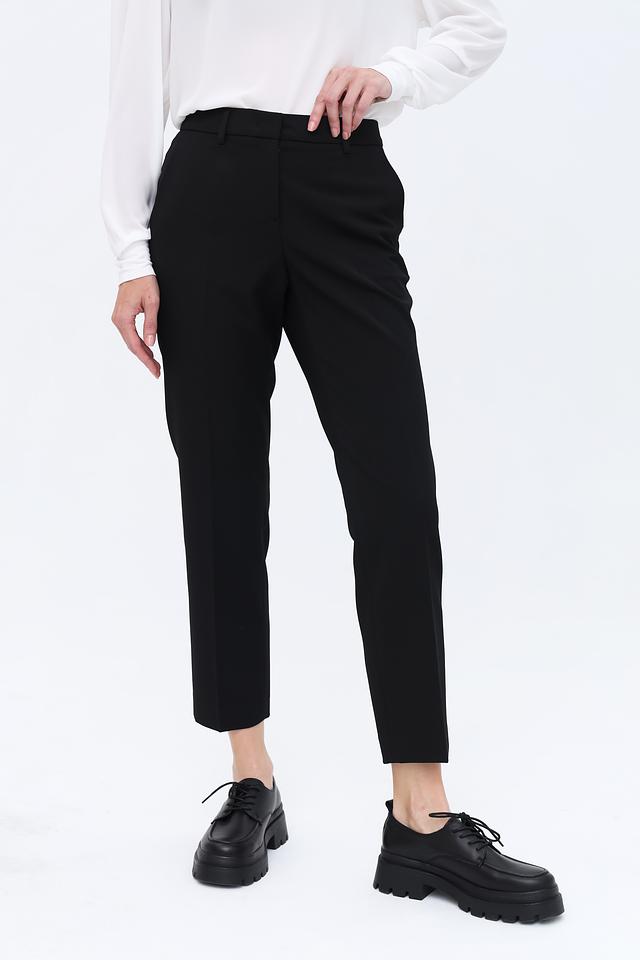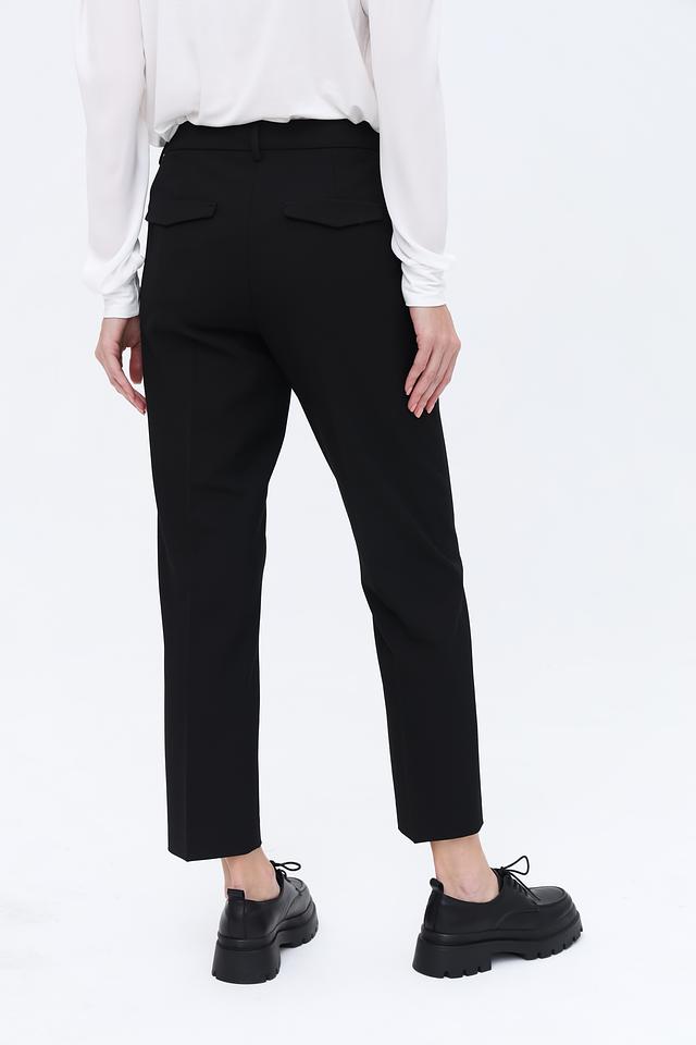 Задние карманы с декоративной отделкой добавляют брюкам изысканности. Данная модель идеально подходит для создания деловых образов в сочетании с блузками и жакетами, а также для повседневных луков с трикотажем и топами. Состав ткани: 67% полиэстер, 29% вискоза, 4% эластан.