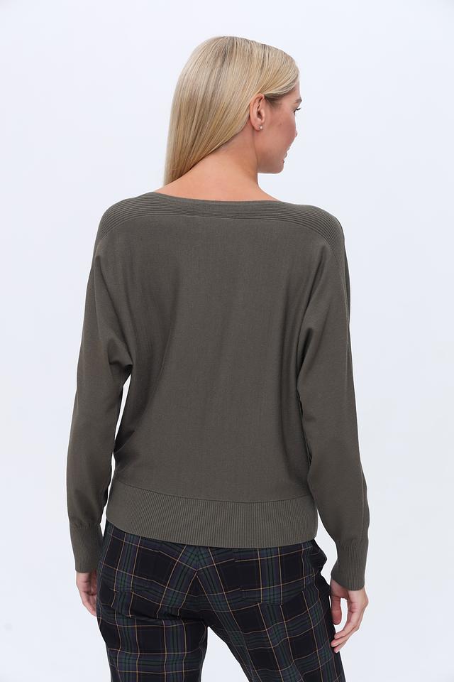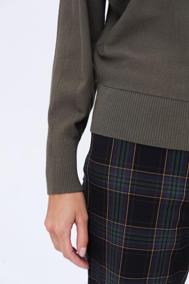 Цвет хаки придаёт пуловеру элегантный и сдержанный вид, позволяя легко сочетать его с другими элементами одежды. Этот пуловер идеально подойдет для создания повседневных и деловых образов.