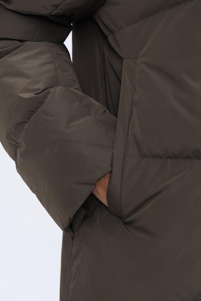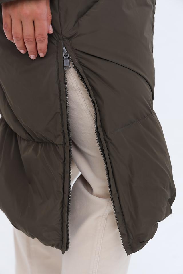 Пальто имеет удлиненный силуэт и капюшон, который защитит от ветра и непогоды. Застежка – молния по всей длине изделия. Боковые карманы добавляют функциональности.