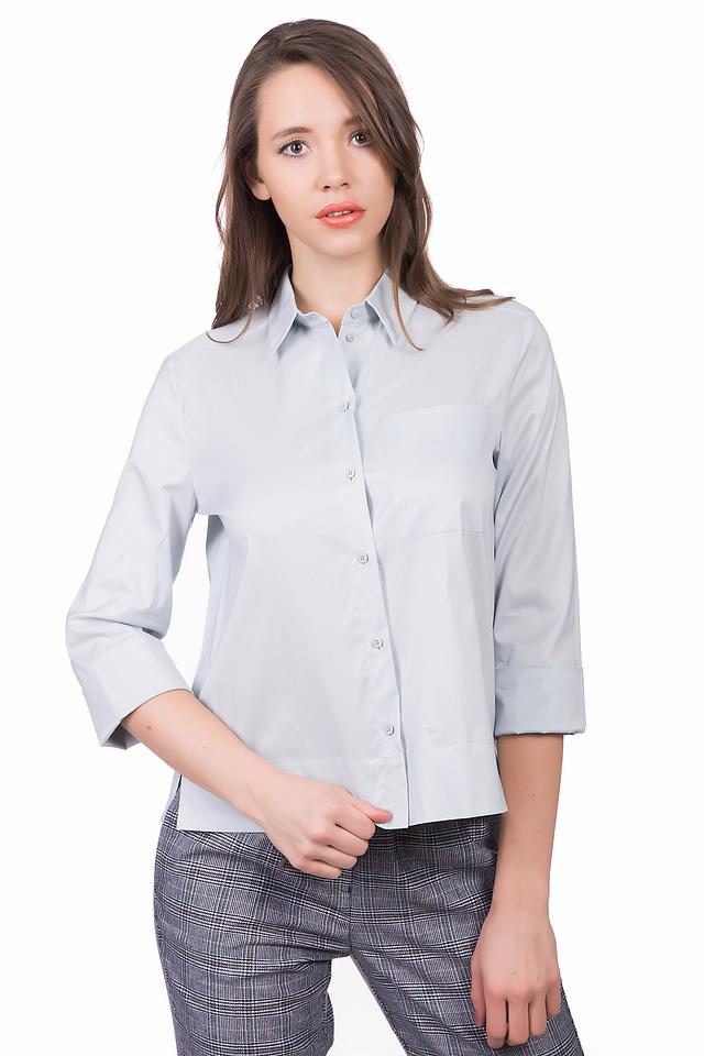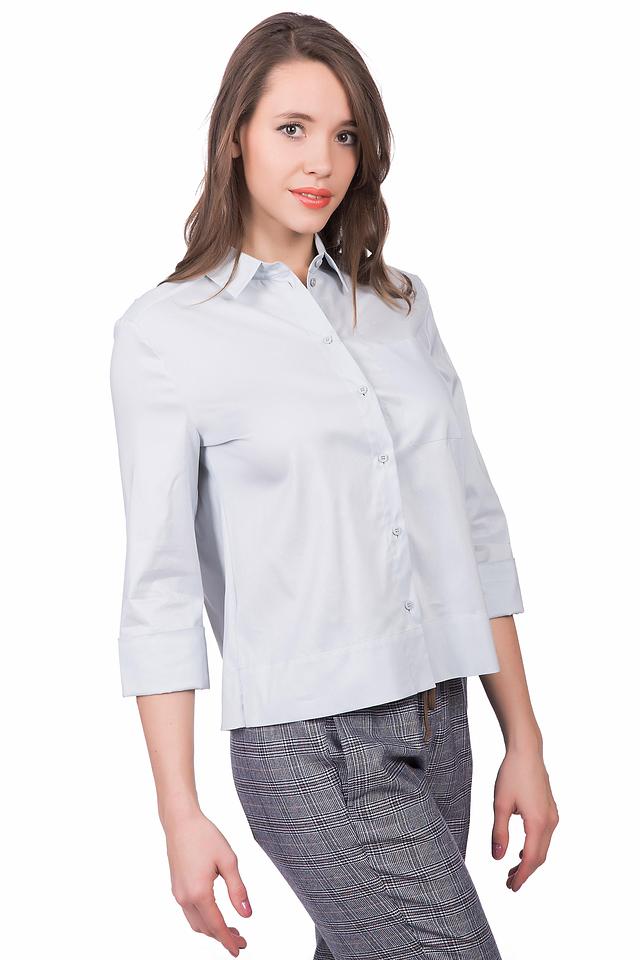 - Дизайн. Блуза имеет прямой крой, классический воротник и рукава ¾, что делает её универсальной для различных стилей.