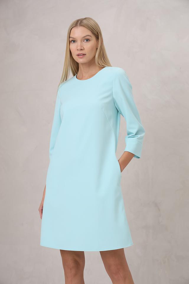 Голубое платье от Luisa Cerano – элегантная модель прямого кроя с рукавами 3/4. Платье выполнено из приятной на ощупь ткани, идеально подходит для создания повседневных и деловых образов. Состав: полиэстер 67%, вискоза 29%, эластан 4%