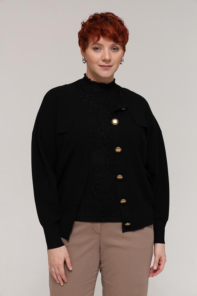 Чёрный жакет от Luisa Cerano – стильная модель с золотистыми пуговицами и рукавами-фонариками. Жакет выполнен из мягкой вискозы с добавлением полиэстера, что обеспечивает комфорт и удобство в носке. Состав: вискоза 72%, полиэстер 28%