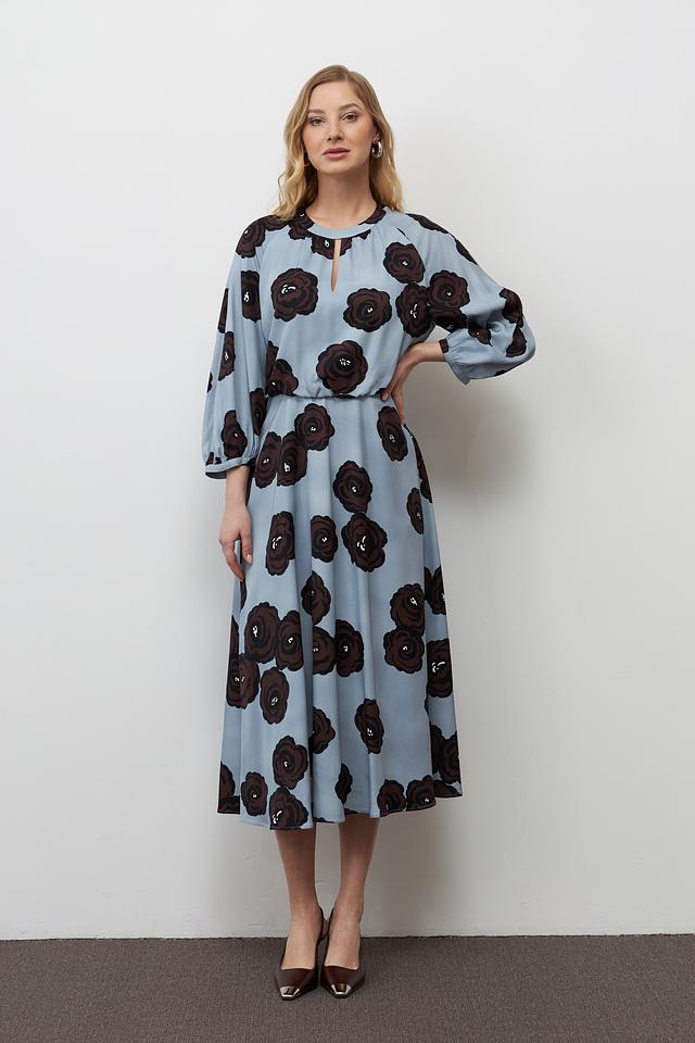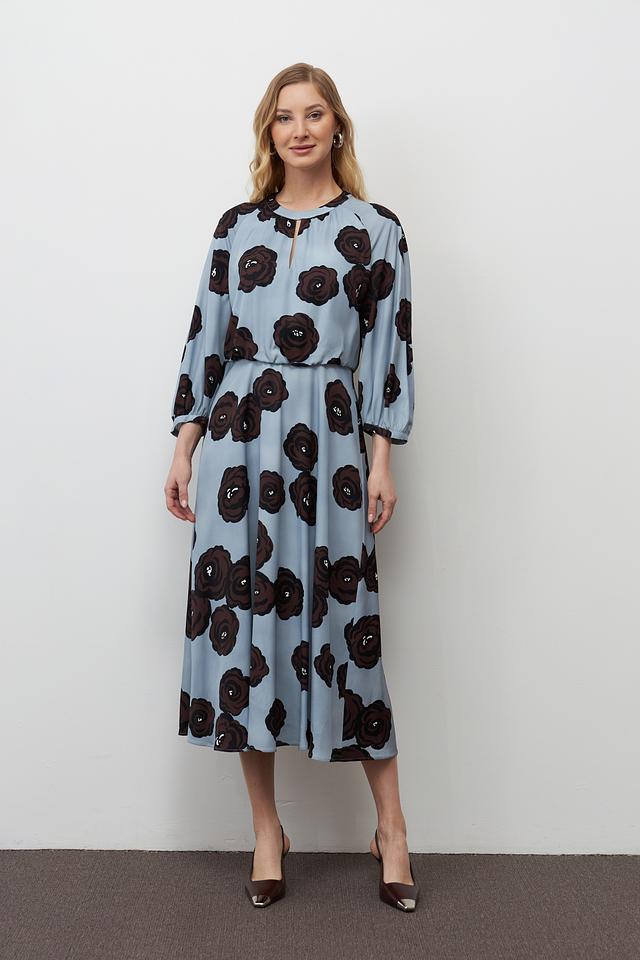 Голубое платье Luisa Cerano с цветочным принтом – элегантный выбор для создания женственного образа. Модель выполнена из вискозы, имеет рукава 3/4 и пояс, подчеркивающий талию. Состав: вискоза 100%