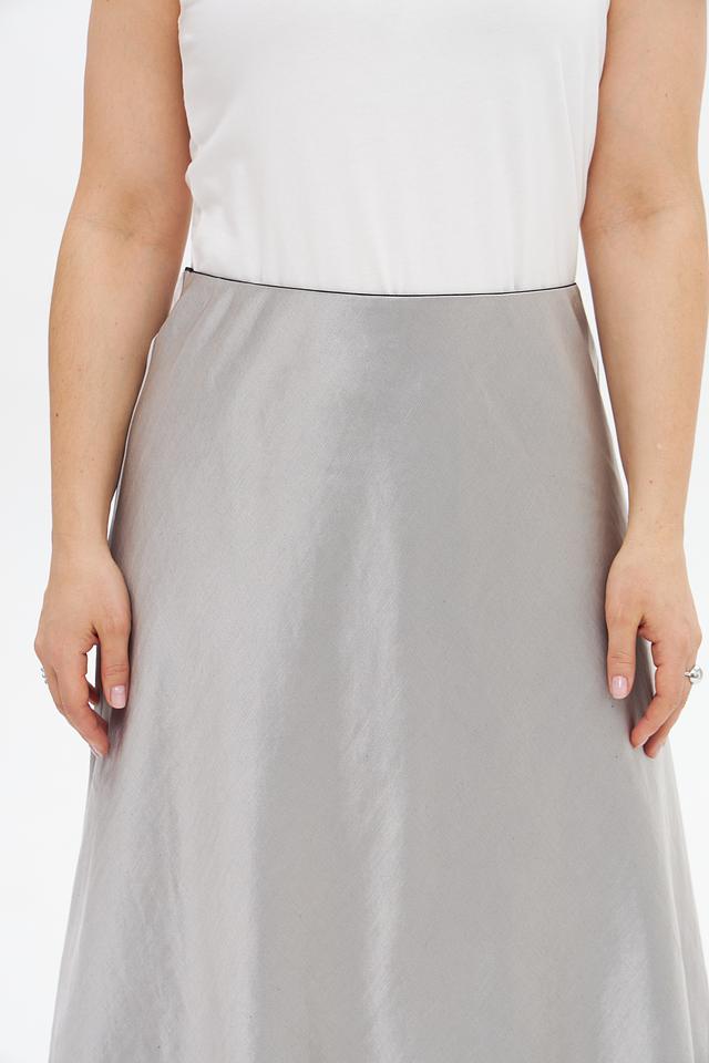 Стильная юбка Luisa Cerano серого цвета, выполненная из вискозы, хлопка и льна. Модель миди длины, с лёгким атласным блеском, идеально подойдёт для создания элегантных образов. Состав: вискоза 46%, хлопок 32%, лен 22%