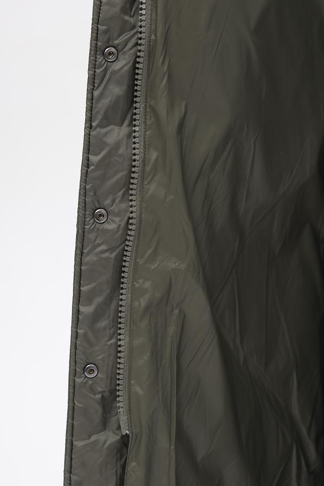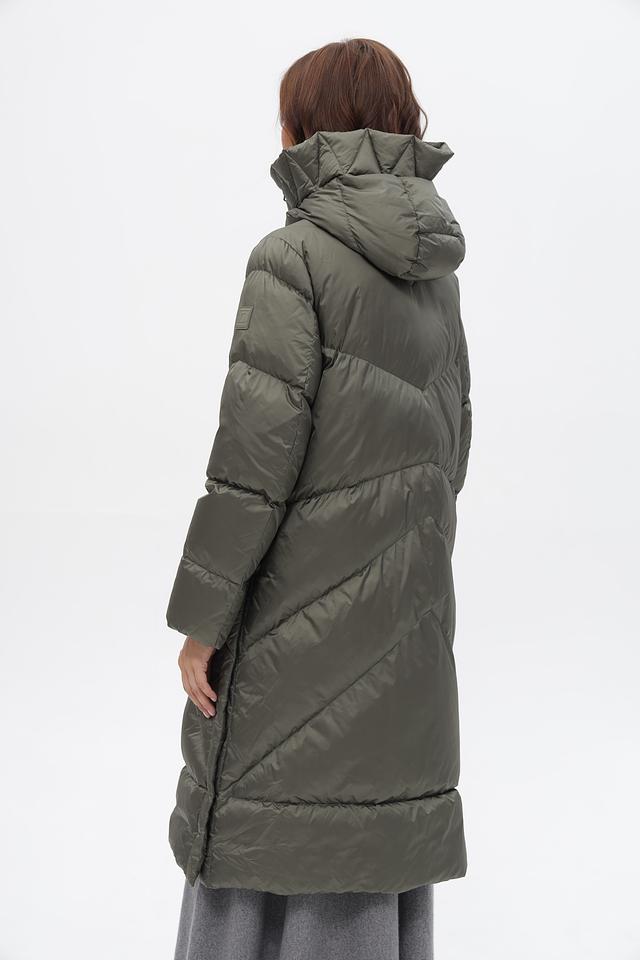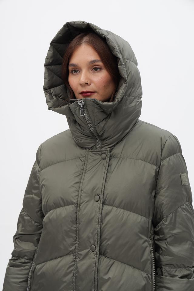 Модель отличается стеганой фактурой и актуальным оливковым цветом. Застежка-молния и кнопки обеспечивают надежную фиксацию, а удобный капюшон защитит от ветра и осадков.