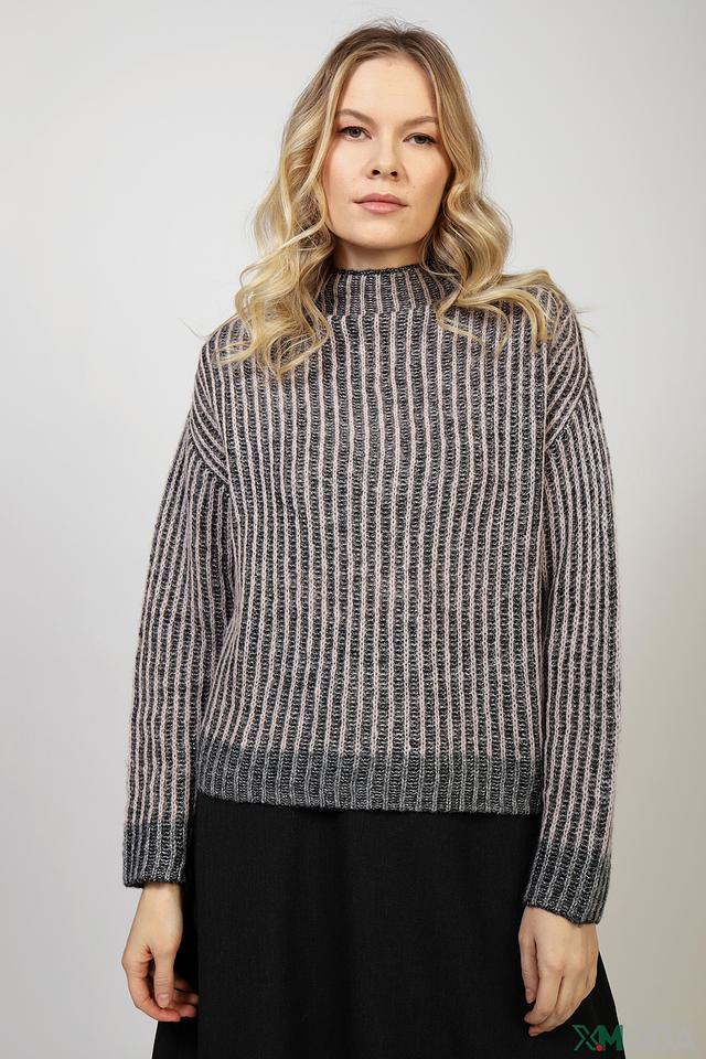 Модель имеет высокий воротник-стойку, который добавляет элегантности, и свободный крой, обеспечивающий комфорт в носке. Пуловер изготовлен из высококачественной пряжи, в состав которой входит шерсть, полиэстер, мохер и полиамид. Такое сочетание материалов обеспечивает мягкость, тепло и долговечность изделия.